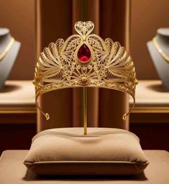 Elevate your bridal look with this gold-plated silver bridal tiara — a perfect blend of elegance and timeless charm.